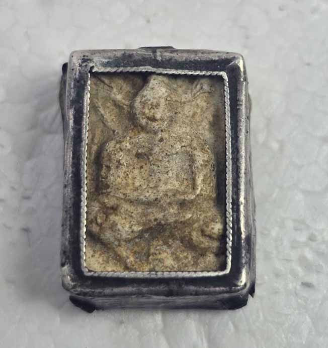 วัดใจ..เท่าไหร่เท่านั้น..พระผงขุดสระหลวงปู่เผือก วัดกิ่่งแก้ว พิมพ์หลังเรียบไม่ทราบปีเลี่ยมเงินเก่า ต่ำกว่า5000บาทออกบัตรเพิ่ม500บาทครับ |