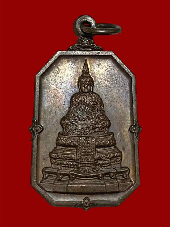 พระพุทธ 25 ศตวรรษ เนื้อชิน พิมพ์พระศกจุด เลี่ยมธรรมจักรเดิม + เลี่ยมกันน้ำพร้อมใช้ แดงเคาะแรก |