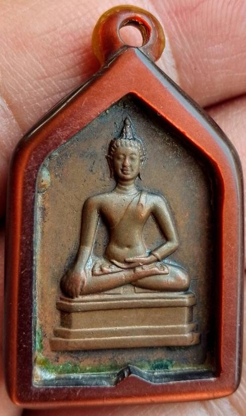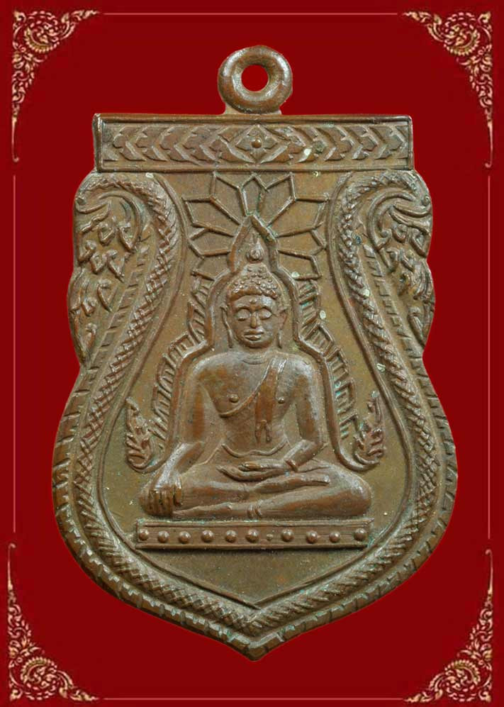 เคาะเดียวแดง..... พระเชียงแสนสิงห์หนึ่ง หลังลายเซ็น เหรียญห้าเหลี่ยม จอมพล ป.พิบูลสงคราม ปี 2494 |