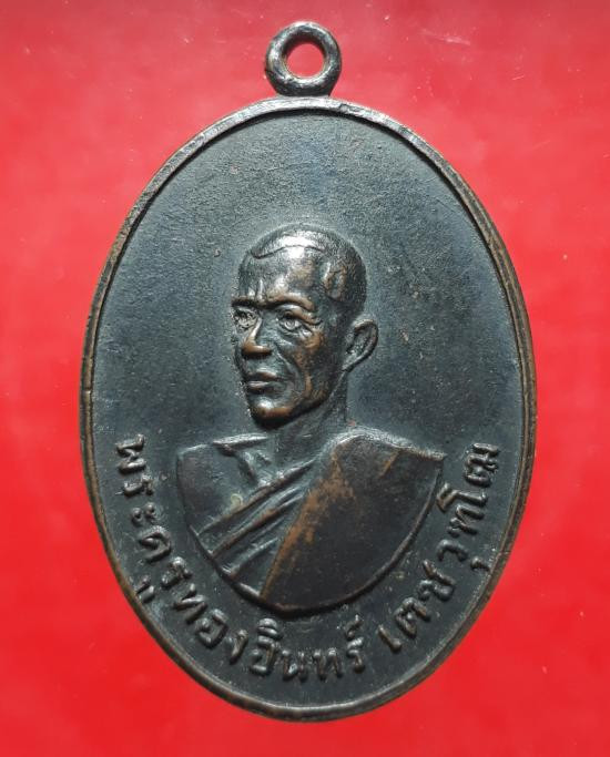 เหรียญหลวงพ่อทองอินทร์ วัดกลางคลองสี่ ปทุมธานี ปี 2516 เนื้อทองแดง เคาะเดียวแดง |