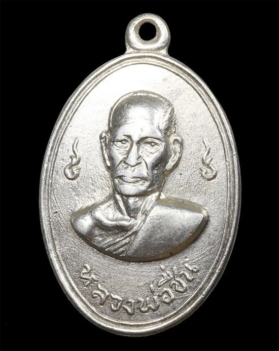 เหรียญรูปไข่เนื้ออัลปาก้าชุบนิกเกิ้ล พิมพ์ 3 ชาย หลวงพ่อยอด อินฺทโชโต วัดหนองปลาหมอ จ.สระบุรี |