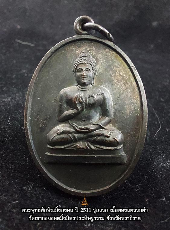เหรียญพระพุทธทักษิณมิ่งมงคล รุ่นแรก วัดเขากง จ.นราธิวาส ปีพ.ศ. 2511 เนื้อทองแดงรมดำ สวยเดิม |