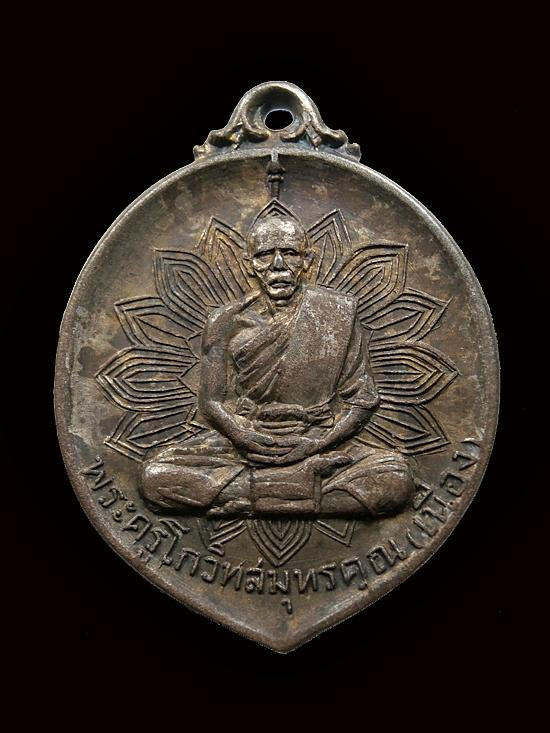 เหรียญหลวงพ่อเนื่อง วัดจุฬามณี จ.สมุทรสงคราม เนื้อทองแดง ปี 2512 มีรอยจาร พร้อมบัตรสถาบัน |