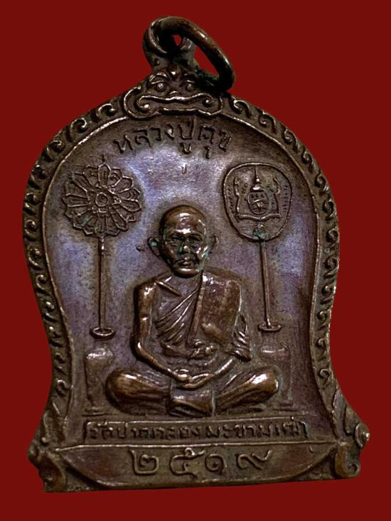 เหรียญสังฆาฏิเปิง(ยันต์สาม) หลวงปู่สุข วัดโพธิ์ทรายทอง บุรีรัมย์ ปี2514 สภาพสวยครับ |