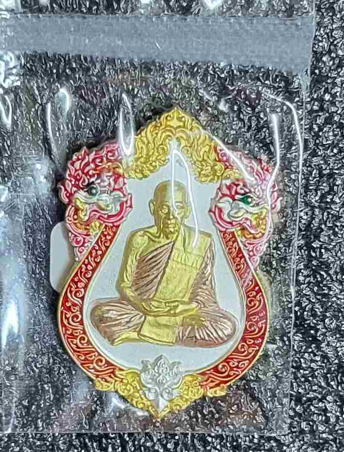เคาะเดียวแดง เหรียญหลวงพ่อพัฒน์ รุ่น เศรษฐีปากน้ำโพ เศรษฐีปากน้ำโพธิ์ เนื้อสัมฤทธิ์ชุบสามเค ลงยา |