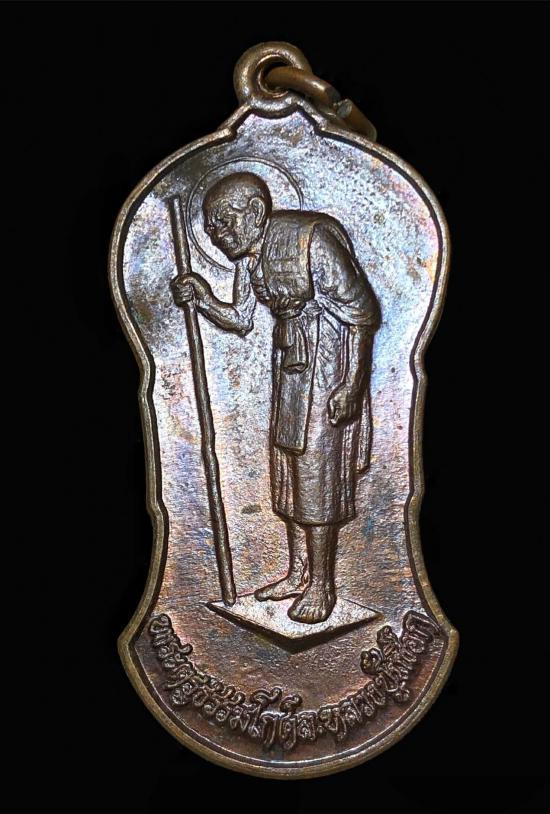 เหรียญยืนถือไม้เท้าหลวงปู่เผือก วัดสาลีโข ปี 2522 |