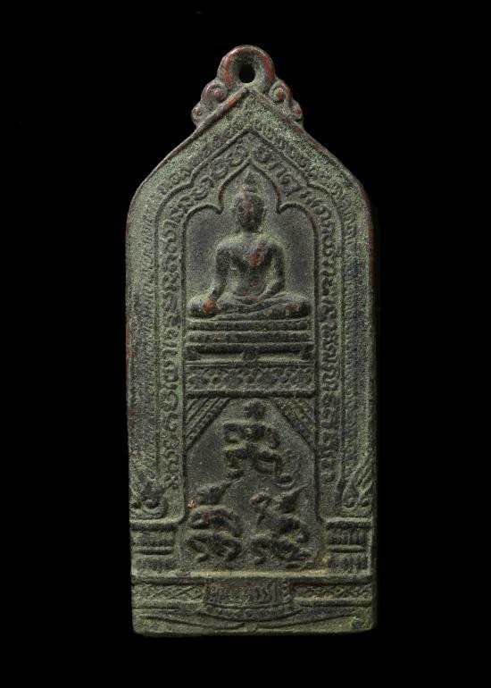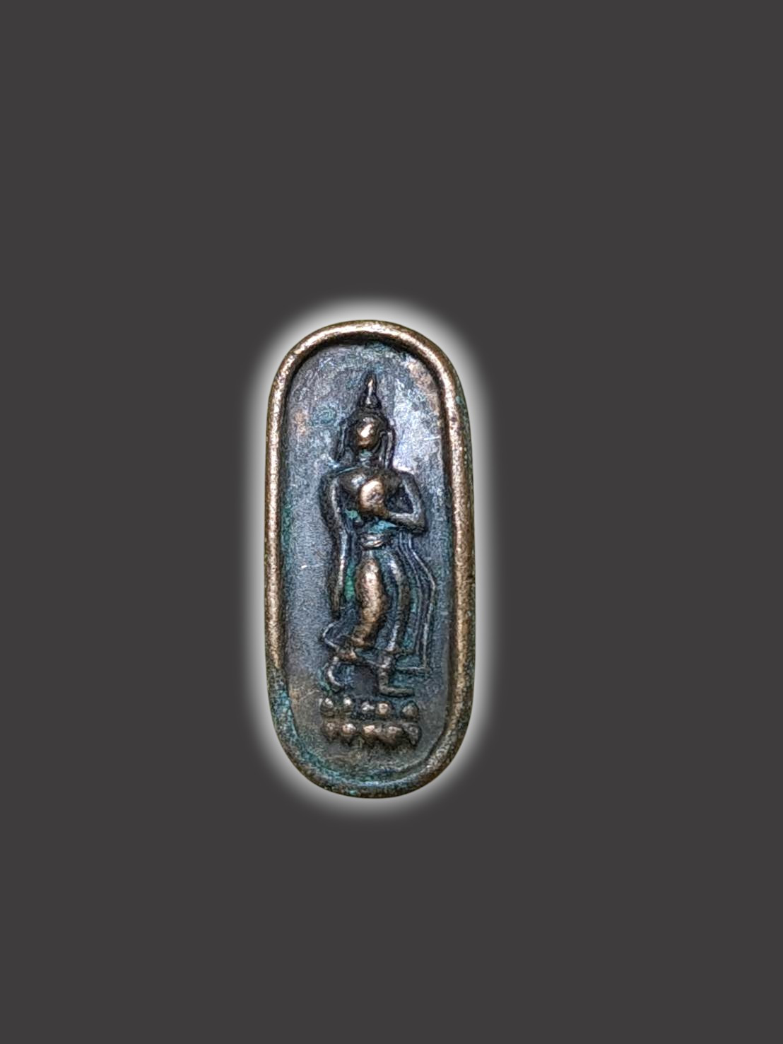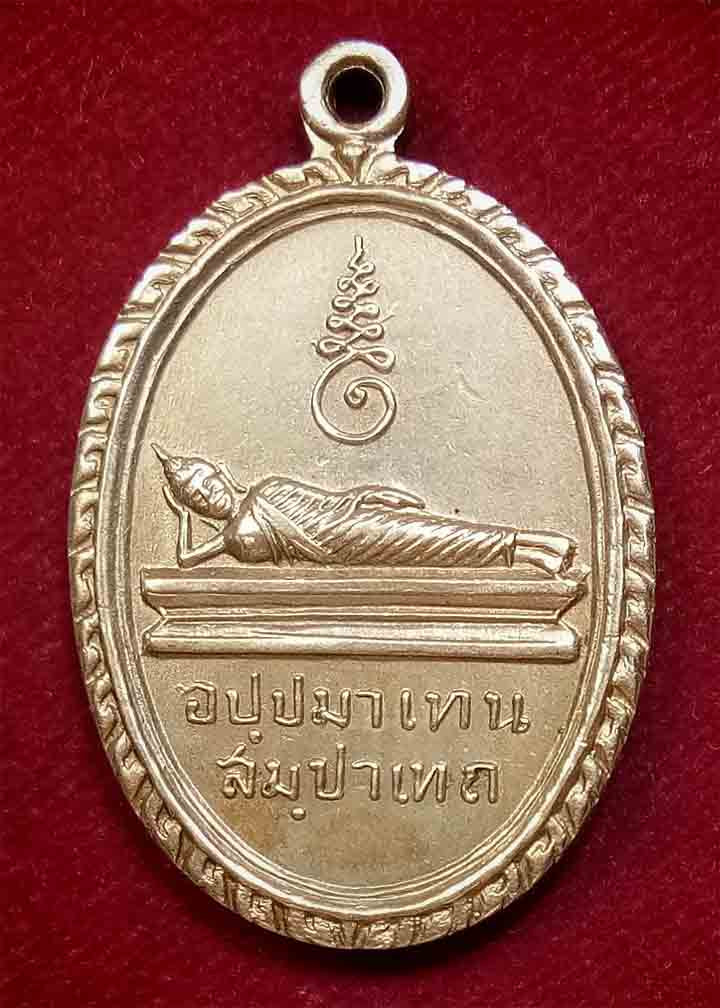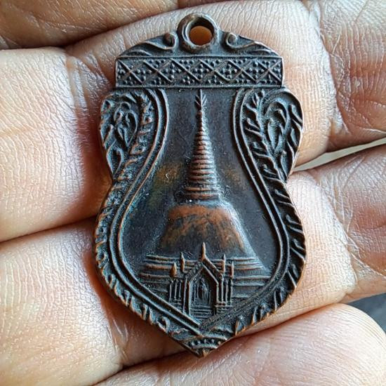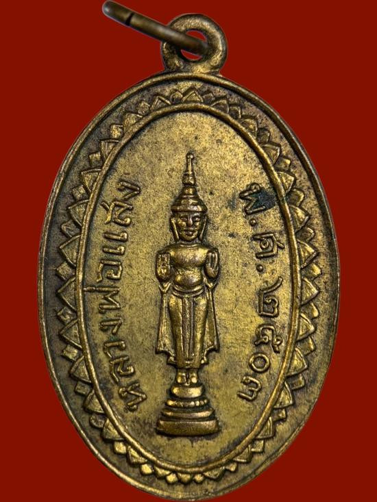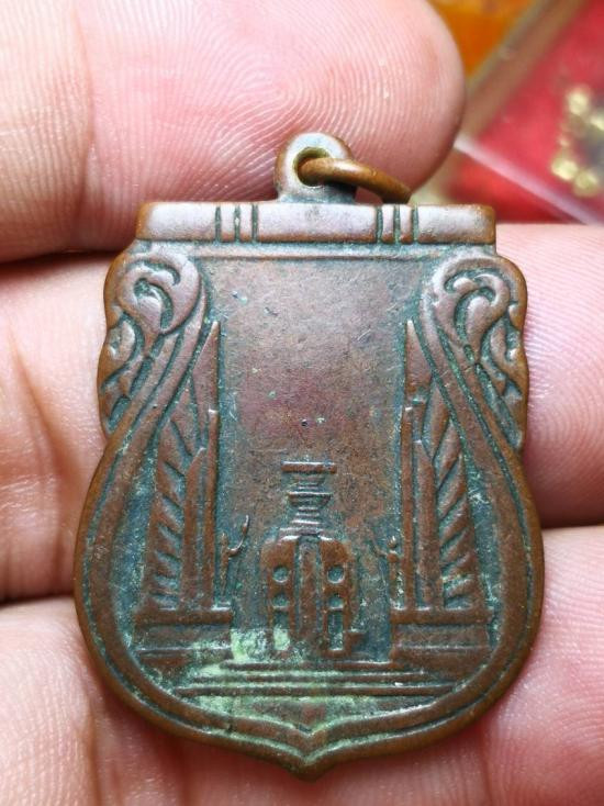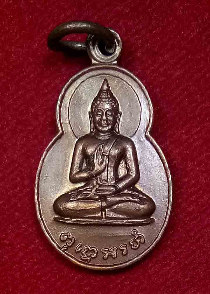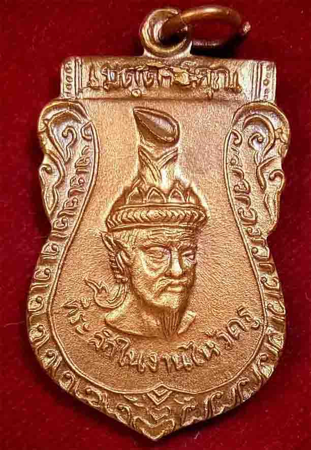 เหรียญพระสยามเทวาธิราช วัดป่ามะไฟ จ.ปราจีนบุรี พิมพ์ใหญ่ บล็อกแข้งขีดหลังน้ำพุ(นิยมสุด) ปี2518 |