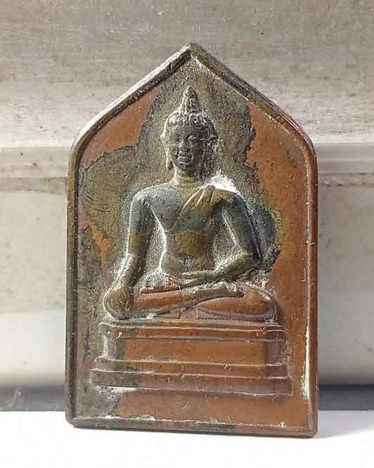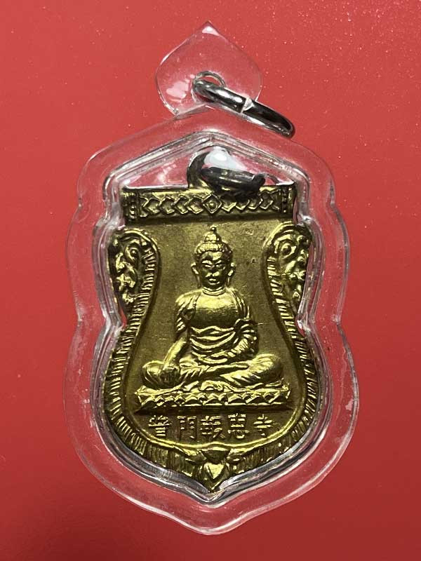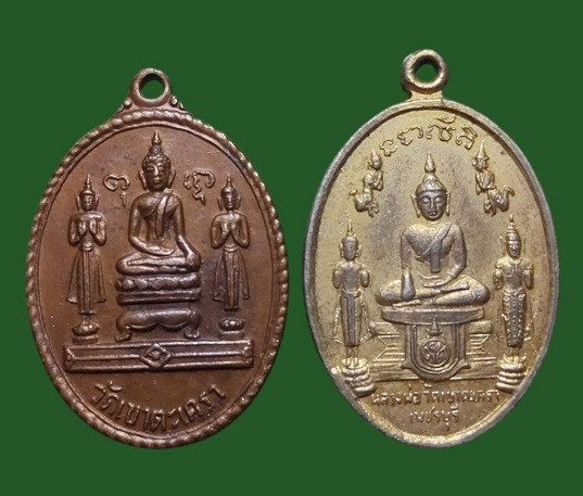 เหรียญพระพุทธไตรยรัตนนายก วัดพนัญเชิง พิมพ์วงเดือน เนื้อทองแดงกะไหล่ทอง ปี 2504 |