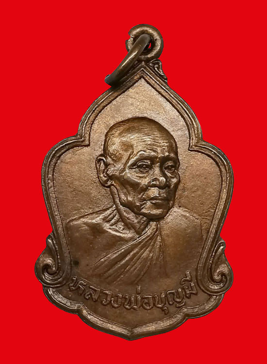 เหรียญหลวงปู่หน่าย วัดบ้านแจ้ง รุ่นปืนแตก เนื้อทองแดง ปี 2521 "มีจาร" |