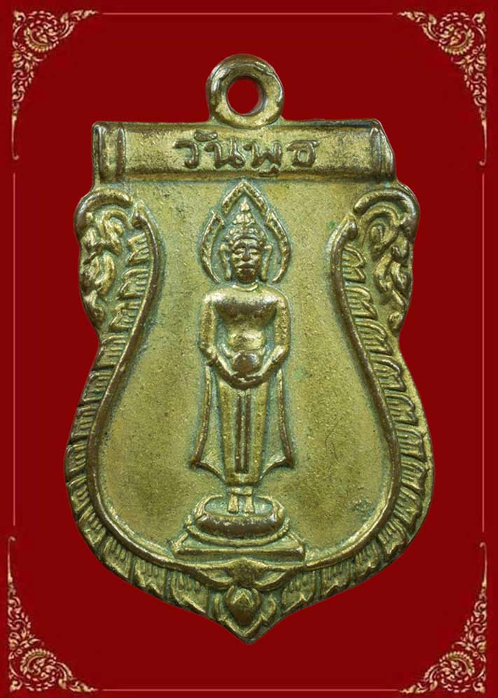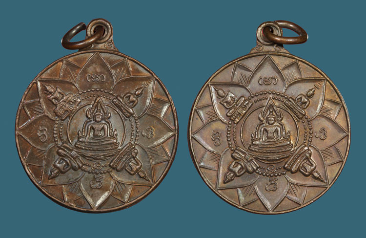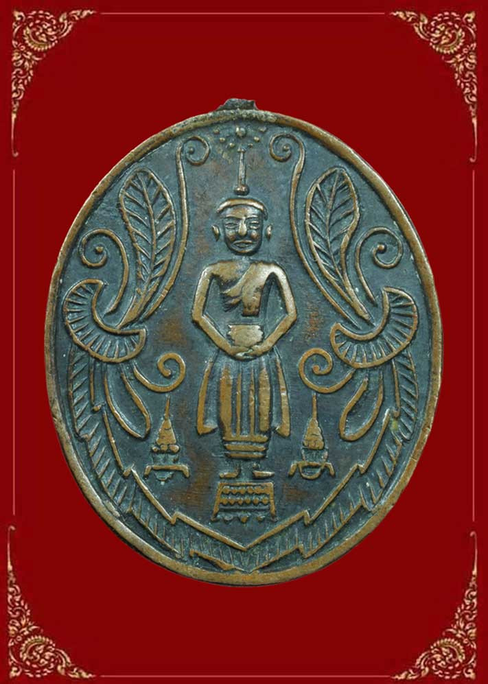 เหรียญพระลีลา 25 พุทธศตวรรษ ปี 2500 พิมพ์ 2 หน้า เลี่ยมเดิม |
