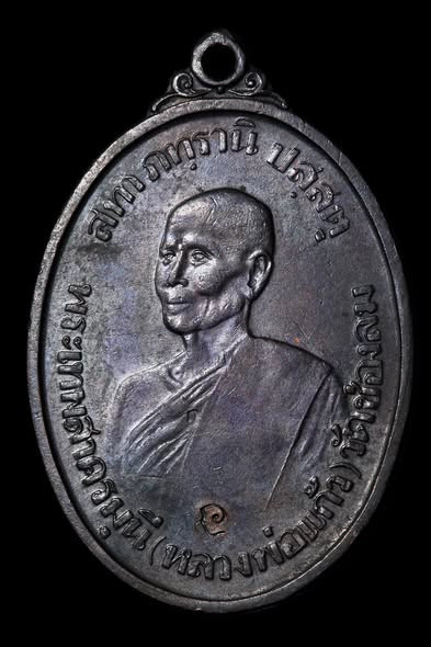 เหรียญรุ่น3 หลวงพ่ออบ วัดถ้ำแก้ว จ.เพชรบุรี ปี 2517 เนื้อนวะโบราณ บล็อคไม่มีดอกจันทร์ |