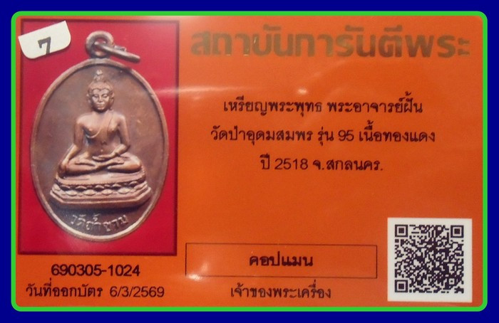 วัดใจ หลวงพ่อทองคำ วัดไทรใหญ่ พ.ศ.2538 นวโลหะ สภาพสวย |