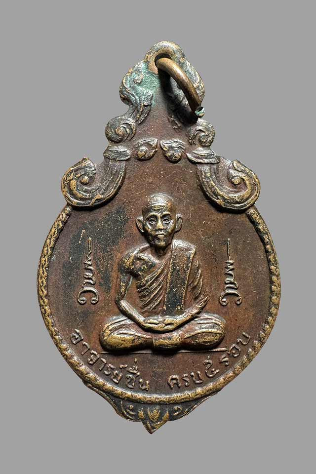 เหรียญอาจารย์ชื่น ปาสาทโก ครบ 5 รอบ วัดถ้ำเสือ จ.กาญจนบุรี ปี 2518 |