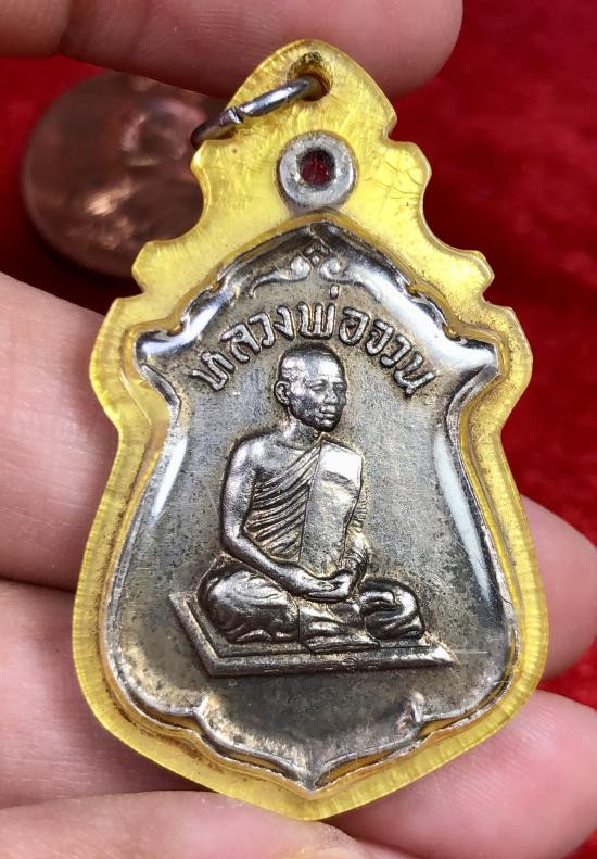 เหรียญ หลวงพ่อหิน วัดเนินถ่าน ปี 18 อัลปาก้ากะไหล่เงิน....หลวงพ่อกวยปลุกเสก |