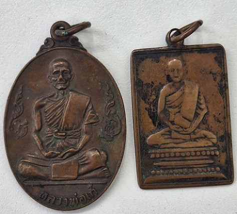100.- เหรียญพระอาจารย์ฝั้น วัดป่าอุดมสมพร เนื้อทองแดง ปี 2515 จ.สกลนคร สภาพใช้ |