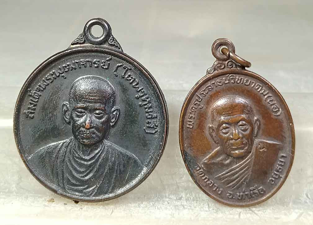 เหรียญสมเด็จพระพุฒาจารย์ ( โต พรหมรังสี ) หลัง ภปร. รุ่นพานแตก วัดไก่จ้น ปี2521อยุธยา +เหรียญหลวงพ่อนอ วัดกลาง ท่าเรือ อยุธยา |