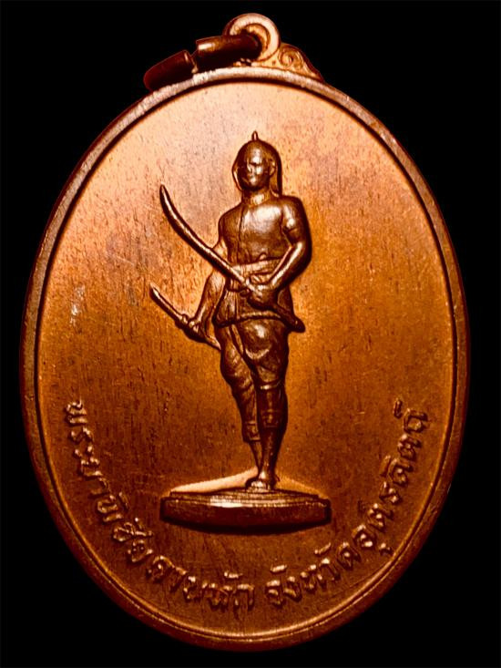 เหรียญ เผด็จศึก พระนเรศวรมหาราช หลังภปร วัดดอนเจดีย์ ปี 16....กะไหล่ทอง |