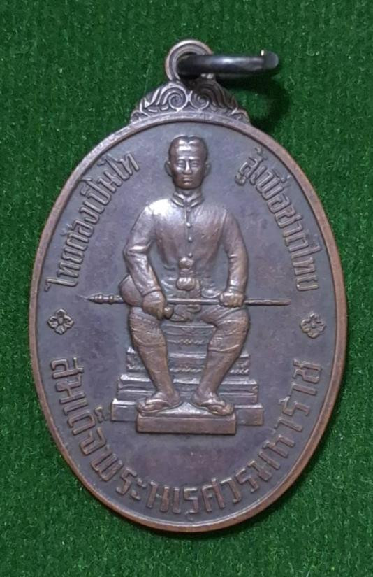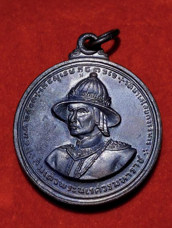 เหรียญสมเด็จพระนเรศวรมหาราช ยุทธหัตถี วัดป่าเลไลย์ ปี 2513 พิมพ์สามดาบคอซี (นิยม) |