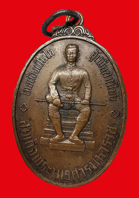 เหรียญสมเด็จพระนเรศวรมหาราช วัดบวรนิเวศฯ รุ่นหนึ่งในสยาม พิมพ์หลังพระไพรีพินาศ(รูปไข่) เนื้อทองแดง ปี2519 จ.กรุงเทพฯ |