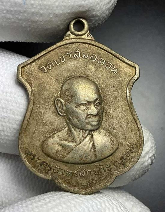 เหรียญวัดแก้วไพฑูรย์ บางขุนเทียน ปี 2500 พิมพ์นิยม เนื้อกะไหล่ทอง ห่วงเชื่อม สวย ๆ |