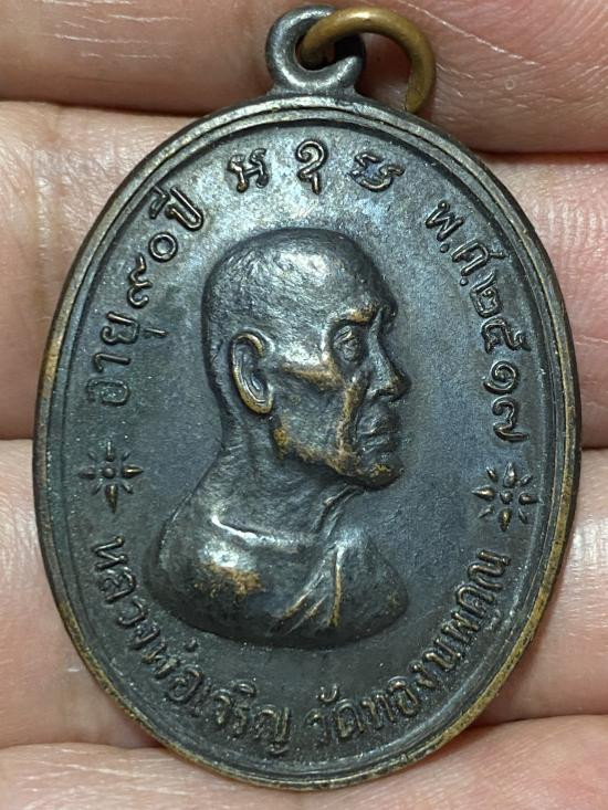 วัดใจเหรียญหลวงพ่อเจริญ วัดทองนพคุณ จ.เพชรบุรี รุ่นเสาร์ห้าพ.ศ. 2516 เนื้อทองแดงสภาพสวยมากรับประกันตามกฎ |