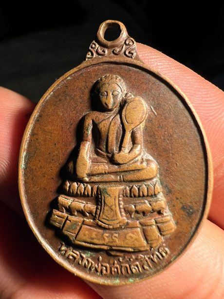 เหรียญหลวงพ่อเมือง วัดท่าแหน ออกวัดลำปางกลาง จ.ลำปาง ปี 2518 เนื้อทองแดง ตอกโค๊ด |