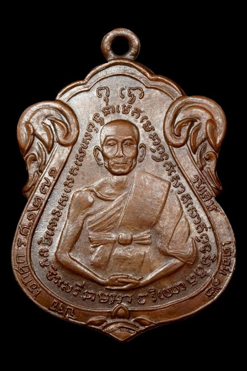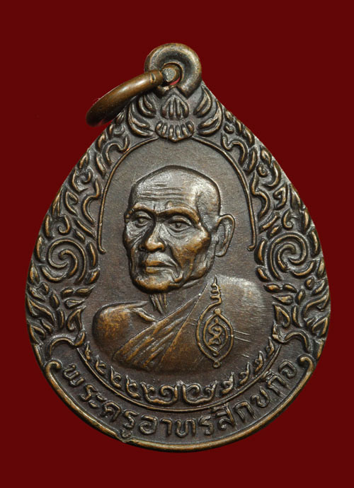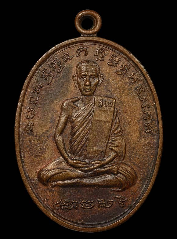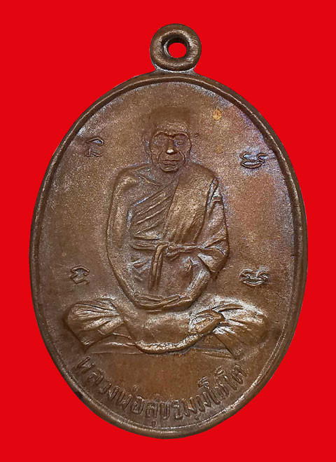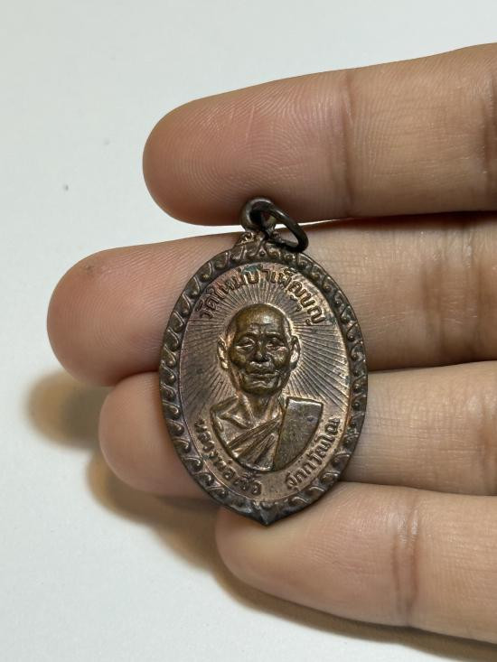 เหรียญหลวงปู่สุข วัดโพธิ์ทรายทอง พิมพ์สังฆาฏิเปิงหลังยันต์สาม เนื้อทองแดง ปี2514 จ.บุรีรัมย์ + บัตรG-pra |