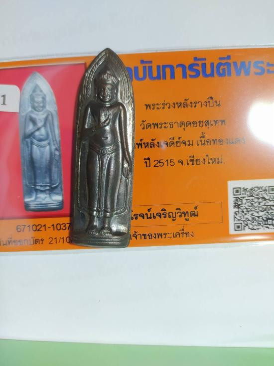 พระร่วงหลังรางปืน วัดพระธาตุดอยสุเทพ พิมพ์หลังเจดีจม เนื้อทองแดง ปี2515 หลวงปูโต๊ะ หลวงพ่อกวย และครูบาชุ่มร่วมปลุกเสกราคาต่ำกว่าทุนครับ พร้อมบัครการันตรีครับก่อนหน้านี้ราคาไป1800ครับ |