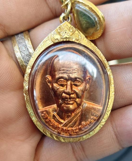 วัดใจ100เหรียญพระครูกรุณาวิหารีผิวไฟ เลี่ยมทองตอกห่วงครับ |