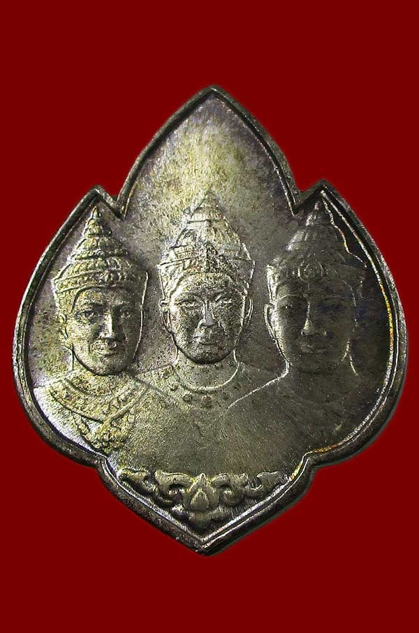เหรียญสามกษัตริย์ พ่อขุนรามคำแหง พ่อขุนเม็งราย พ่อขุนงำเมือง ปี2525 จ.เชียงใหม่ เนื้อเงิน ตอกโค๊ต สภาพสวย พร้อมกล่องเดิม |