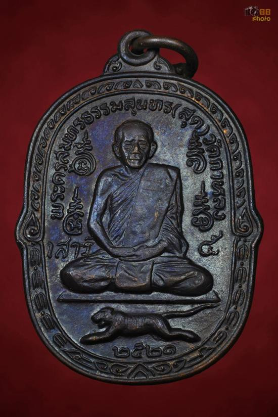 เหรียญหลวงปู่ศุข บล๊อคหูตัด รุ่นสร้างศาลหลักเมืองชัยนาท เนื้อทองแดง ปี 21 |