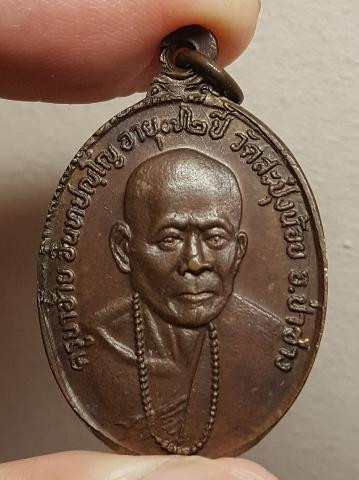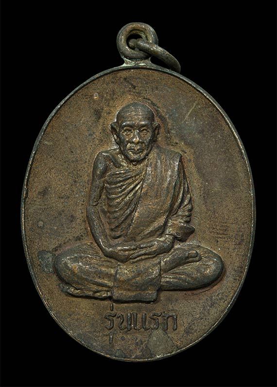 วัดใจ เหรียญรุ่นแรก หลวงพ่อสมบุญ วัดลำพันบอง เนื้อทองแดงกะไหล่ทอง จ.สุพรรณบุรี ปี 2519 |
