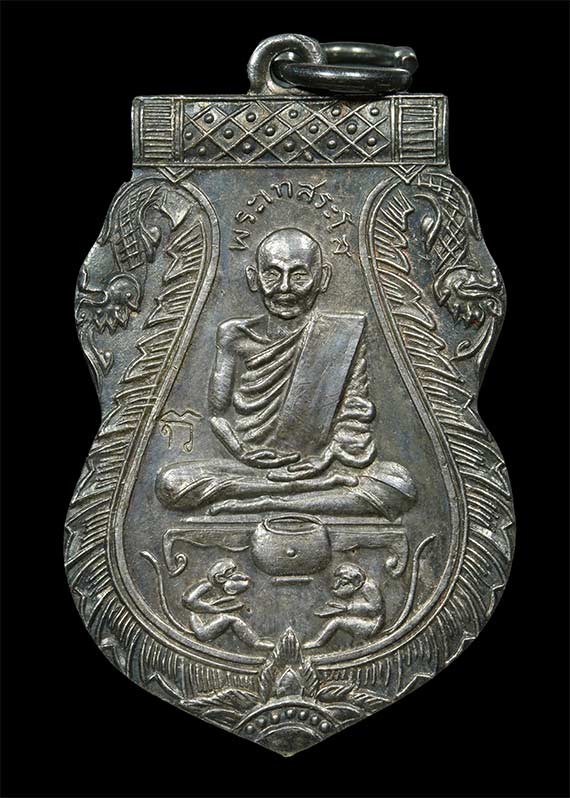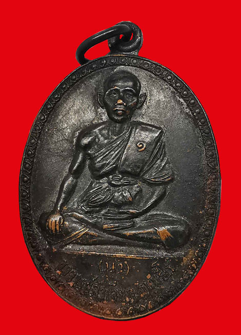 เหรียญหลวงพ่อบ้านแหลม วัดเพชรสมุทรฯ พิมพ์ฐานจุด หลังยันต์ ปี 2481 |