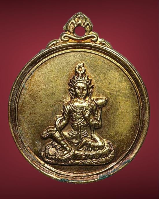 เหรียญพระโพธิสัตว์ดารา เจ้าคุณโพธิ์แจ้ง ปี 2512 เนื้อทองเเดงกะไหล่ทอง วัดโพธิ์แมน กทม. |