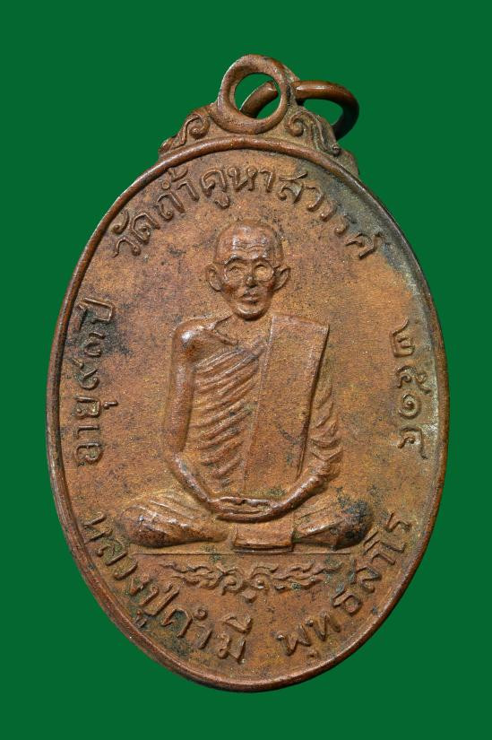 วัดใจ เหรียญหลวงปู่คำมี วัดถ้ำคูหาสวรรค์ ปี 2514 วาระแรก หลังยันต์ดวง หายากมาก |