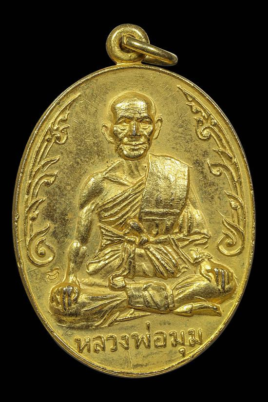 เหรีัยญนักกล้ามหลวงพ่อมุม วัดปราสาทเยอร์ เนื้อทองแดงกะไหล่ทอง ปี 2517 มีจาร สวยเดิมๆ แดง 2000 |