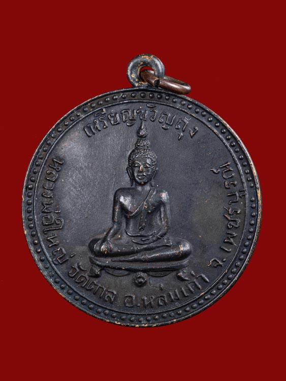 คาะเดียวแดง เหรียญรุ่นแรก หลวงพ่อทองอยู่ วัดหนองพะองค์ ปี 2509 เนื้อทองแดงรมดำ บล็อคเฟือง |