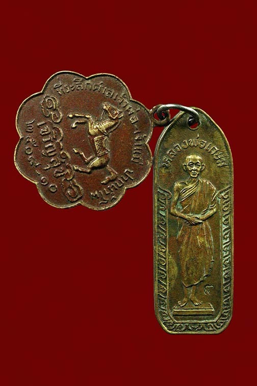 เหรียญที่ระลึกศาลเจ้าพ่อเจ้าแม่ปากน้ำโพ เหรียญยืน หลวงพ่อเกษม เขมโก รุ่น กตัญญู 19 วิสาขบูชา ปี 32 เนื้อทองเหลืองฝาบาตร ออกวัดนางเหลียว กับเหรียญหลวงพ่อเต๋ วัดสามง่าม จังหวัดนครปฐม |