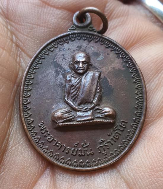 วัดใจเหรียญหลวงปู่มั่น ภูริทัตโต เนื้อทองแดง อาจารย์ฝั้นเสก ปี 2514 |