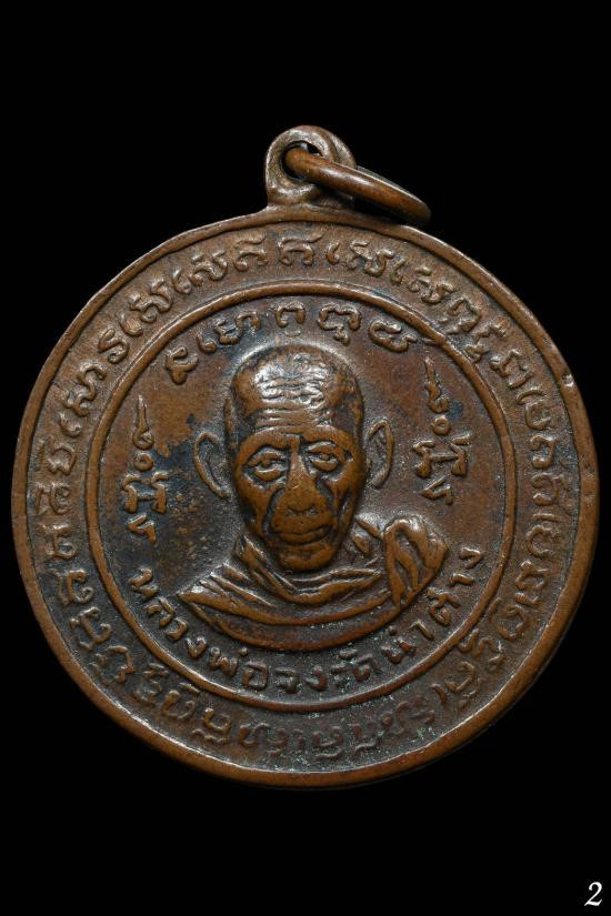 เหรียญกลม หลวงพ่อจง วัดหน้าต่างนอก พิมพ์หลังสิงห์ (๓ ใหญ่ มีกลาก) เนื้อทองแดง ปี 2502 |