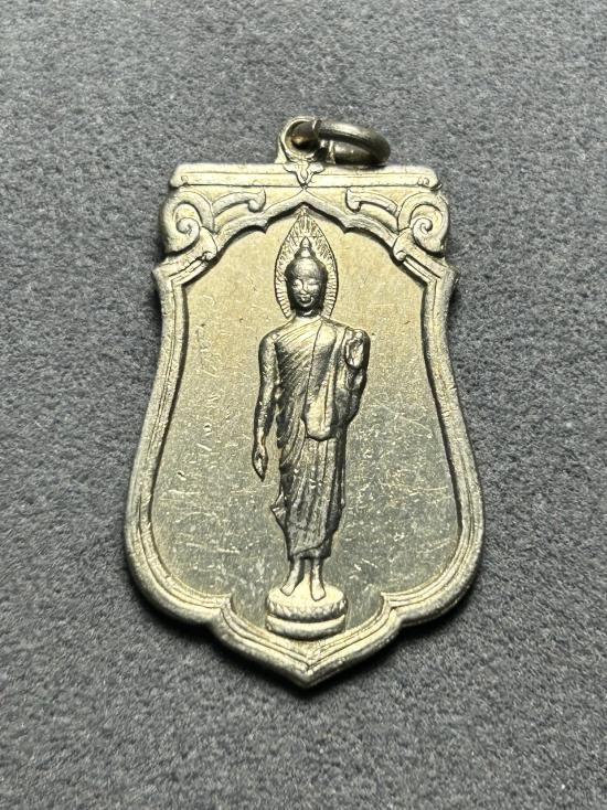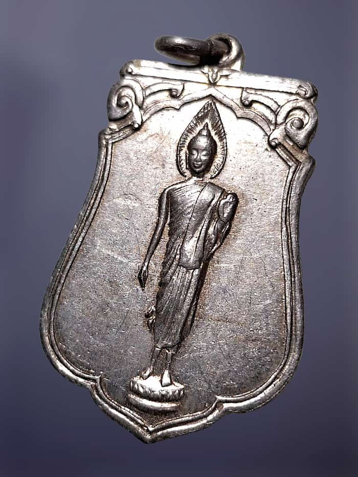 เหรียญพระพุทธชินราชหลังพานพระศรีและอกเลา ปี 2496 เนื้อกะไหล่เงิน วัดพระศรีฯ จ.พิษณุโลก |