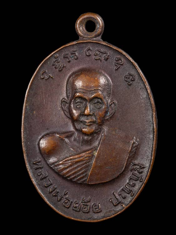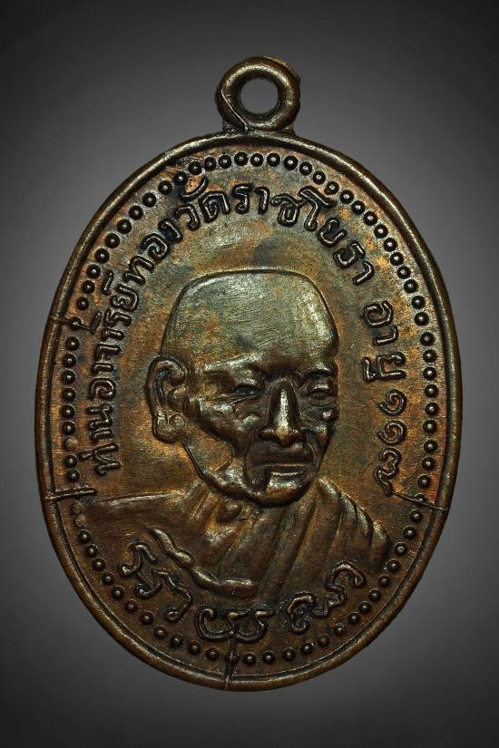 เหรียญหลวงพ่อมุ่ย วัดดอนไร่ รุ่นศาลาการเปรียญ พิมพ์รูปไข่ เนื้อทองแดง ปี 2516 จ.สุพรรณบุรี |