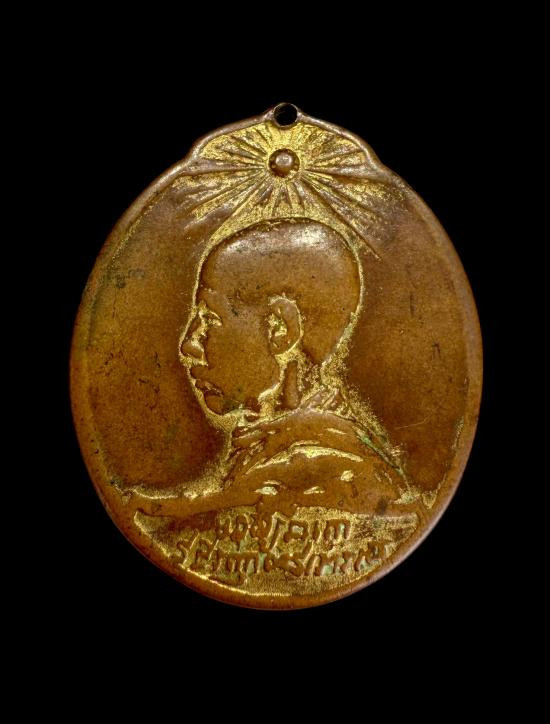 เหรียญจปร.หลวงพ่อแดง วัดเขาบันไดอิฐ บล็อกบางหลังขีด เนื้อทองแดงรมดำ จ.เพชรบุรี ปี 2513 |