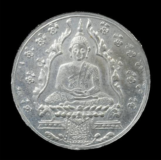 เหรียญพระพุทธ 25 ศตวรรษ พิมพ์ตื้น เนื้ออัลปาก้า ปี 2500 กรุงเทพฯ พร้อมบัตรรับรอง |