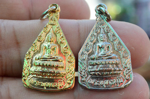 เหรียญหลวงพ่อเกาะเพชร วัดเกาะ เนื้อทองแดงกะไหล่เงิน ปี 2513 จ.สมุทรสาคร ครับ |