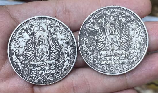 เหรียญหลวงพ่อวัดเขาตะเครา หลังหลวงพ่อเทวฤทธิ์ จ.เพชรบุรี พิมพ์ใหญ่ ปี ๒๕๑๖ 2 เหรียญ |