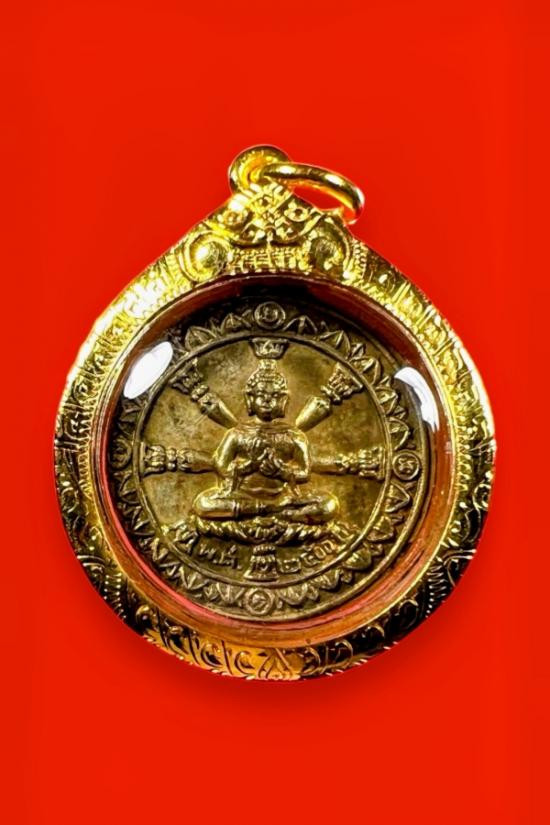เหรียญธรรมจักร ท่านพ่อลี วัดอโศการาม สมุทรปราการ ปี 2500 เนื้อทองแดงกะไหล่ทอง สวยมาก เลี่ยมทอง |