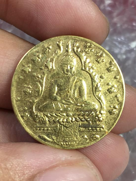 เคาะเดียวแดง เหรียญพระไพรีพินาศ วัดบวรฯ พิมพ์บล็อกทองคำ เนื้อทองแดงกะไหล่ทอง ปี 2495 |