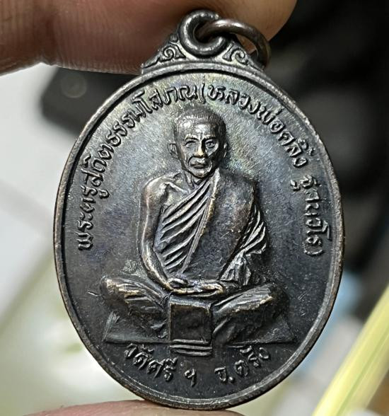 เหรียญหลวงพ่อคลิ้ง วัดศรีฯ ตรัง รุ่นชนะเลิศ อ.นำสร้าง ปี2522 เนื้อทองแดงรมดำผิวสวยรุ้ง |