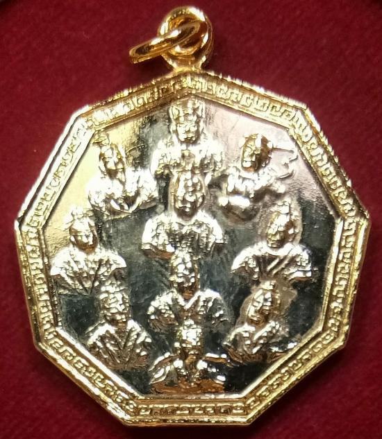 เหรียญ 9 เหลี่ยม มงคล 10 เทพเจ้า หลังอักษรจีน....กะไหล่ทอง |